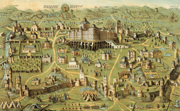 Image: Charles O’Donnell, Detail from “Ancient city of Jerusalem with Solomon’s Temple,” ca. 1871.Public domain, via Wikimedia commons.