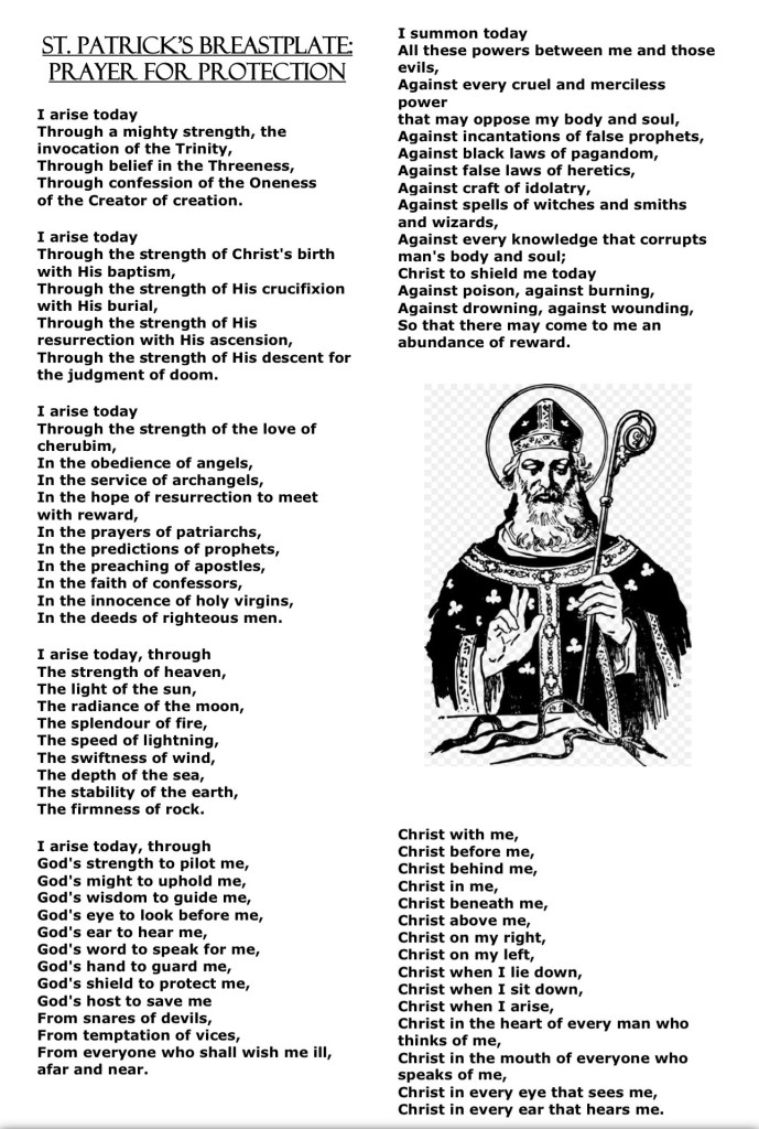 So perhaps in modern times, we might like to add to Patrick’s prayer: “Christ in Republicans. Christ in Democrats. Christ in everyone in between. Christ in citizens and legal immigrants. Christ in those without papers. Christ in persons of all nations and races. Christ in those that love us. Christ in those who hate us. Christ in everyone I see or hear.”